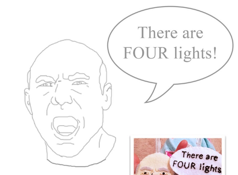 Picard is captured by the cardassians and subjected to physical and psychological torture to make him believe there are five lights instead of four in the interrogation room. And yet, in the epilogue to the story our hero acknowledges that he was ready to capitulate, prepared to recognize a lie as truth: There was no way to remove the watermark from memes without paying for the full imgflip pro, which is more expensive. Good prevails over evil and all is well with the world. He could have used any other method to break picard's will, but why four lights?